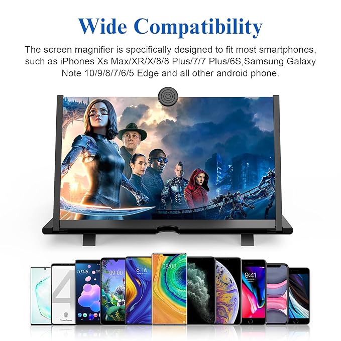 - 【Suitable for All Phones】- This 2021 newest version phone screen magnifier is compatible with all smartphones including the newly released iPhone 13 iPhone 13 Pro/miniPro/13 12/12 Pro/12 Pro Max/12 Mini/11/XS Max, Samsung Galaxy S21+/S21 Ultra/Note 20/S20 Fe/S20/S10/ 10, Pixel 5/4/3/2 XL, LG, One Plus. Gear up your cellphone for the magnifying FUN!